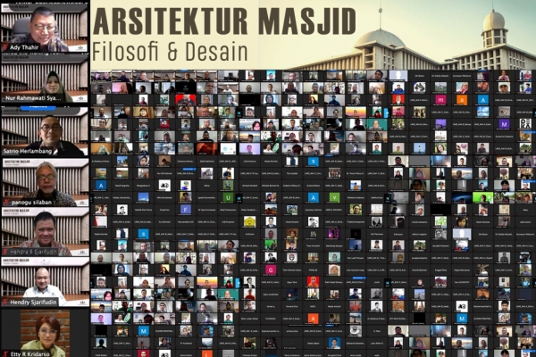 Seminar virual tentang ARSITEKTUR MASJID - FILOSOFI & DESAIN, bertujuan memberi pemahaman kepada para arsitek muda dan pemerhati bangunan ibadah Islam, agar dapat menciptakan karya desain Masjid terbaik sesuai akidah agama dan kemajuan teknologi terbaru. Bagaimana latar belakang perencanaan sebuah masjid dari kaca mata peneliti arsitektur disampaikan Dr. Nur Rahmawati Syamsiah, ST, MT., dosen Arsitektur Universitas Muhammadiah Surakarta yang menelusuri filosofi perancangan arsitektur Masjid di Indonesia; Sejarah kebesaran fasilitas peribadatan Islam di Indonesia tidak bisa terlepas dari hadirnya Masjid Akbar ISTIQLAL yang digagas Presiden pertama Ir. Soekarno, dan direalisasikan oleh seorang Arsitek Frederich Silaban, sebagai pemenang sayembara Masjid Nasional kala itu.