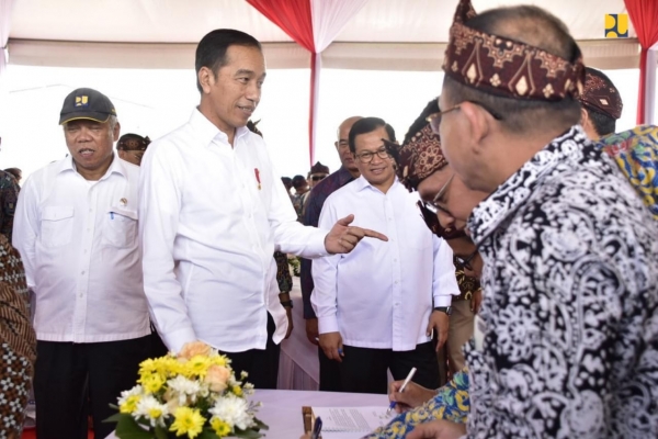 Dari jumlah tersebut, 100 paket kontrak atau senilai Rp 4,8 triliun ditandatangani secara serentak oleh para Pejabat Pembuat Komitmen (PPK) dan penyedia jasa di hadapan Presiden Joko Widodo (Jokowi) didampingi Menteri PUPR Basuki Hadimuljono serta Menteri Kesehatan Terawang Agus Putranto, Menteri Sosial Juliari P Batubara, dan Sekretaris Kabinet Pramono Anung dalam acara Peresmian Terowongan Nanjung dan Penandatanganan Kontrak Hasil Lelang Dini TA 2020 di Bandung, Rabu (29/1/2020).