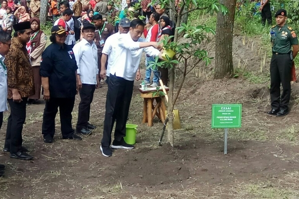 Presiden Jokowi menaman pohon pule di Jurang Jero, Magelang.