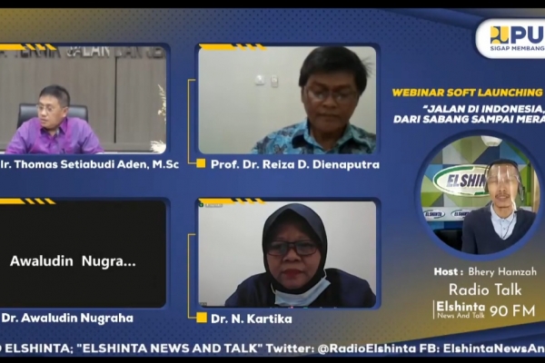 Turut hadir dalam webinar peluncuran buku “Jalan di Indonesia dari Sabang sampai Merauke” Direktur Preservasi Jalan dan Jembatan Wilayah II Thomas Setiabudi Aden dan Profesor Ilmu Sejarah Universitas Padjadjaran Prof. Reiza D. Dienaputra sebagai narasumber.