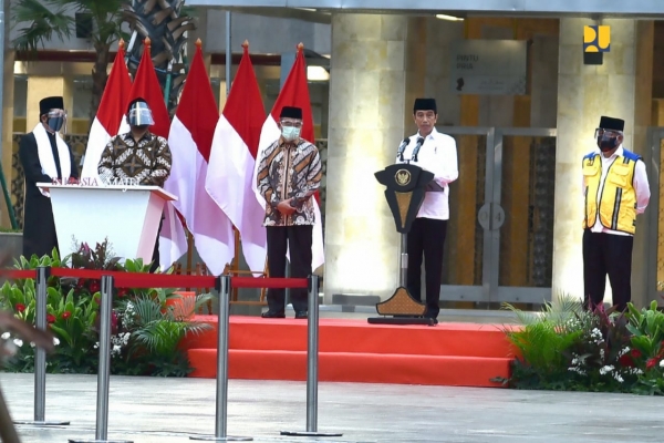 JAKARTA- Presiden Joko Widodo (Jokowi) didampingi Menteri Pekerjaan Umum dan Perumahan Rakyat (PUPR) Basuki Hadimuljono, Menteri Agama Yaqut Cholil Qoumas, Menko PMK Muhadjir Effendy, Gubernur DKI Anies Baswedan dan Imam Besar Masjid Istiqlal Nasaruddin Umar meresmikan selesainya renovasi Masjid Istiqlal, Kamis (7/1/2021).