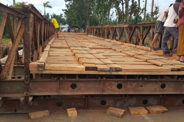 JAKARTA- Kementerian Pekerjaan Umum dan Perumahan Rakyat (PUPR) melalui Balai Pelaksanaan Jalan Nasional (BPJN) Kalimantan Selatan (Kalsel) telah menyelesaikan pemasangan Jembatan Bailey sebagai pengganti sementara Jembatan Tabunio II yang putus akibat banjir di Kabupaten Tanah Laut, Rabu (20/1/2021). Hujan deras yang mengguyur sebagian wilayah di Provinsi Kalsel sejak sepekan terakhir mengakibatkan Sungai Maluka dan sejumlah anak Sungai Pelaihari meluap. Salah satunya Sungai Tabunio yang menggerus oprit Jembatan Tabunio II.