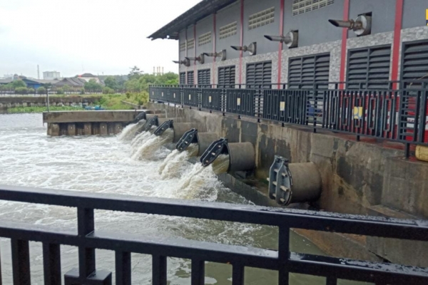 "Pada saat musim hujan, bendung ini akan berfungsi menahan aliran air sungai yang masuk KBB dan pada saat elevasi 2,5 meter, kemudian akan dialirkan ke laut. Sementara saat musim kemarau, bendung sepanjang 155,5 meter tersebut berfungsi sebagai penampungan air atau long storage berkapasitas 700.000 m3," tuturnya.