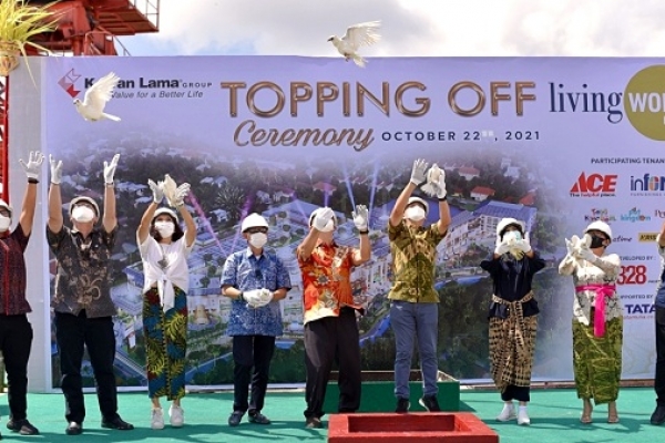 JAKARTA – Kawan Lama Group segera rampungkan proyek mal Living World ketiganya di Kota Denpasar, Bali, yang saat ini sudah memasuki tahap finishing ditandai dengan upacara Topping Off pada hari Jumat, 22 Oktober 2021 lalu. Proyek ini menjadi proyek mal Living World ketiga Kawan Lama group, setelah berhasil menghadirkan mal Living World pertama di Alam Sutera, Tangerang, pada tahun 2011, dan disusul Living World Pekanbaru pada tahun 2018. Proyek shopping center yang berdiri di atas lahan seluas ±3,5 hektar dengan luas bangunan mal dan area parkir sekitar 120.000 m2 ini mencapai nilai investasi hingga Rp800 miliar dan direncanakan untuk mulai beroperasi pada akhir tahun 2022.