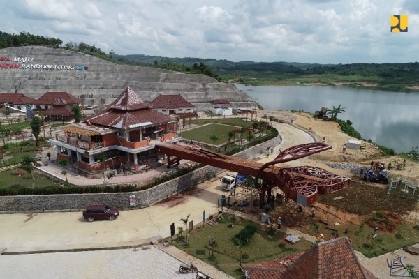 "Bendungan ini bisa selesai lebih cepat 10 bulan dari kontrak yang jatuh pada tahun 2022. Secara keseluruhan bendungan sudah selesai, tinggal perapihan gedung dan lansekap saja. Mudah-mudahan bisa diresmikan Bapak Presiden pada awal Januari 2022 ini" kata Menteri Basuki.