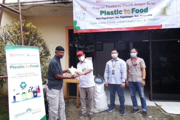 Program Plastic to Food dilakukan oleh Sinar Mas Land dan Chandra Asri melalui penyerahan 1,4 ton beras yang ditukarkan dengan 1,4 ton sampah plastik oleh warga Cicayur di kantor Badan Usaha Milik Desa (BUMDes) Pagedangan, Kabupaten Tangerang. Jumlah plastik tersebut dikumpulkan sepanjang Januari 2022.