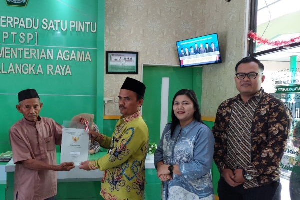 Penyerahan sertifikat secara langsung oleh BPN Palangka Raya, diharapkan dapat memberikan rasa aman dan nyaman bagi umat beragama dalam menjalankan ibadah.