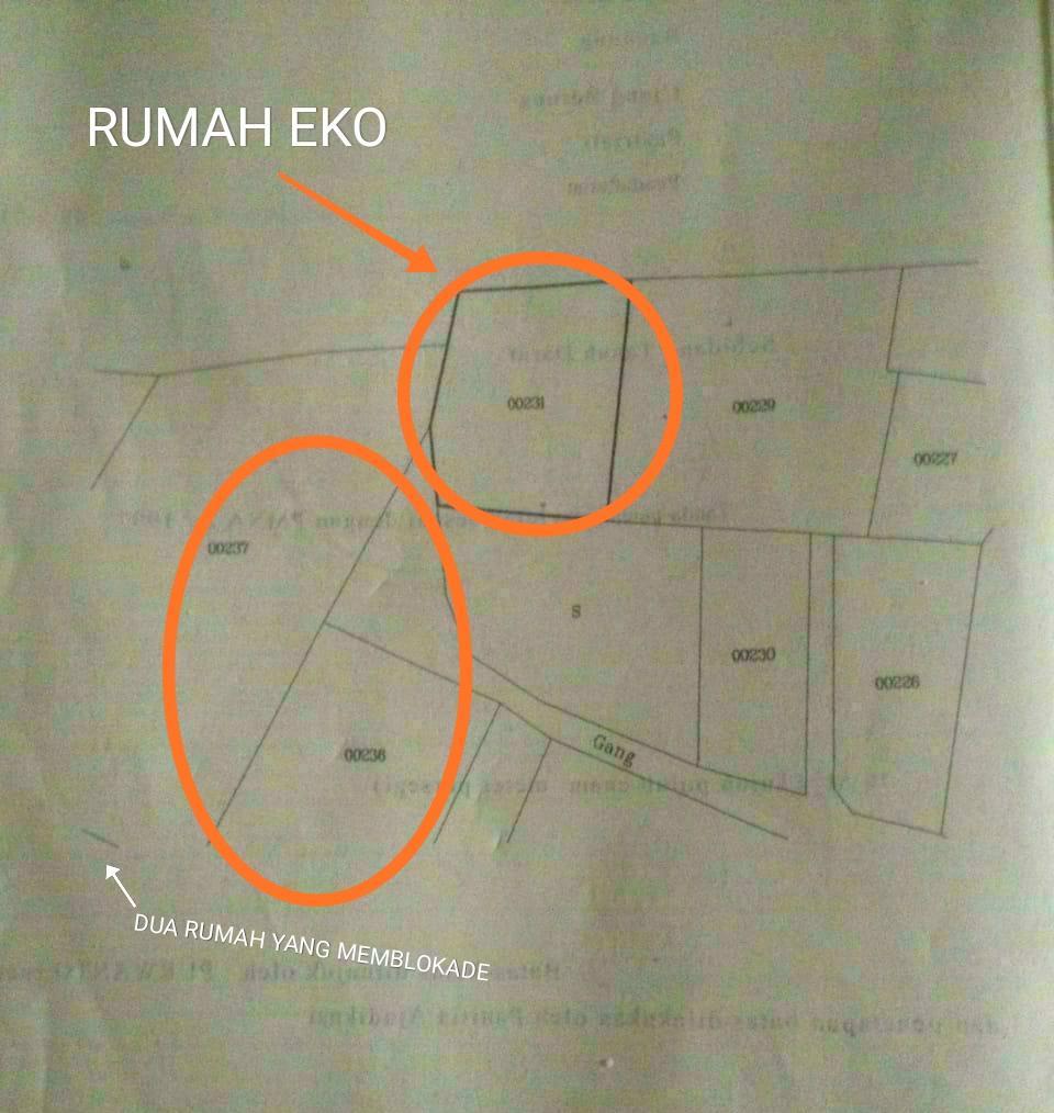 Ya, sejak medio 2016, dibangun rumah di depan dan samping rumah Eko. Hal ini menyebabkan rumah Eko tidak memiliki jalan untuk masuk maupun keluar.