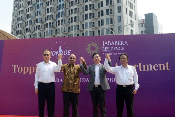 BEKASI, HARIANPROPERTY.COM-Proyek apartemen Monroe di Jababeka Residence telah memasuki tahap akhir pembangunan. Untuk itu digelarlah seremoni Topping Off. Seremoni ini dihadiri oleh Sutedja S. Darmono selaku Presiden Direktur Jababeka Residence beserta jajaran managerial dan juga pembeli apartemen Monroe.