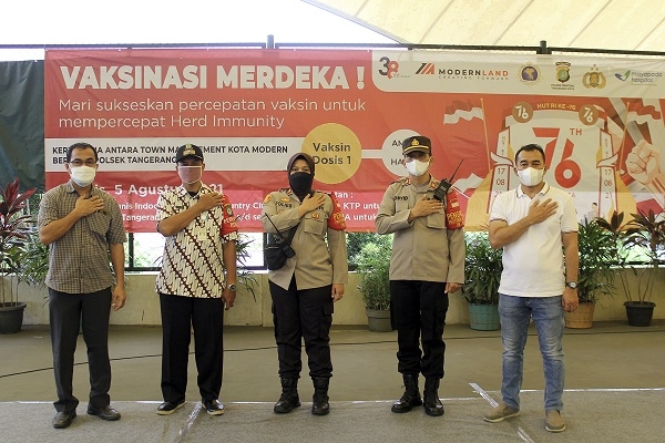 Tampak dalam gambar: Togu Pangihutan, General Manager Town Management & High Rise Jakarta Garden City (pertama kiri) bersama Kapolsek Benteng, Read More